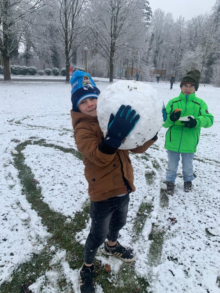 Mit großer Begeisterung wurden Weihnachtskarten gestaltet, Christbaumschmuck gebastelt, fröhliche Lieder gesungen sowie Rhythmusspiele und Volkstänze ausprobiert. Die Vielfalt der Angebote sorgte dafür, dass für jedes Kind etwas Passendes dabei war. Der erste Schnee sorgte für eine ausgelassene und fröhliche Pause!