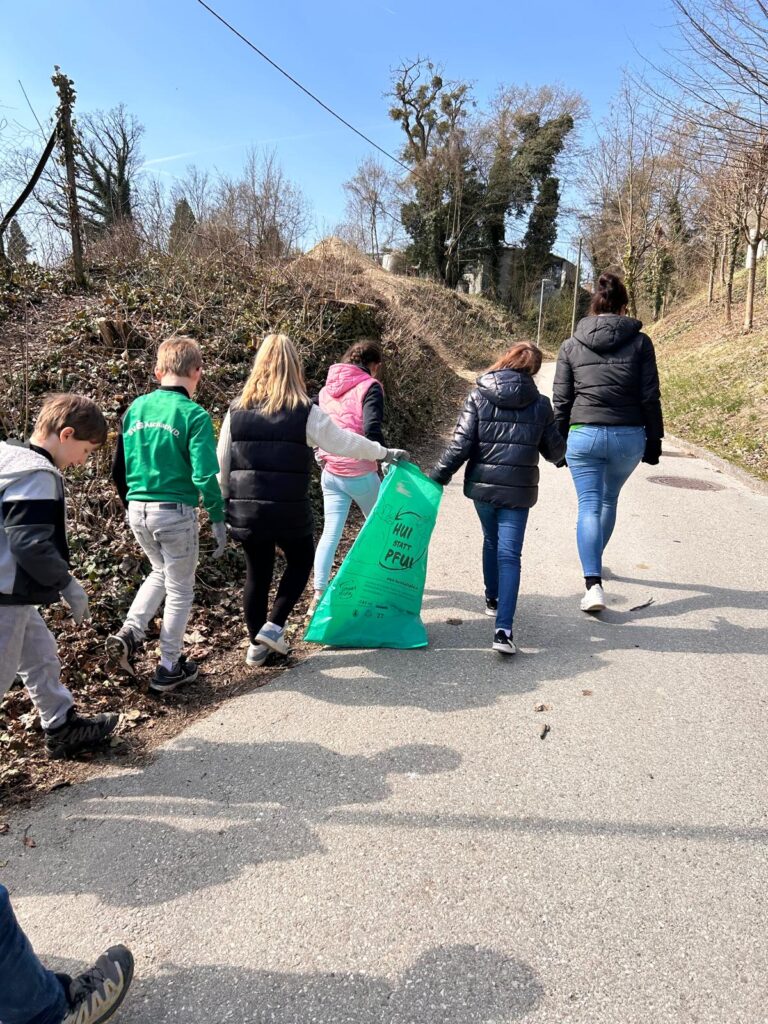 Mit viel Eifer sammelten die Kinder zahlreiche Abfälle ein. Dabei waren einige sehr erstaunt, was alles in der Natur landet – von Plastikverpackungen bis hin zu ungewöhnlichen Fundstücken.