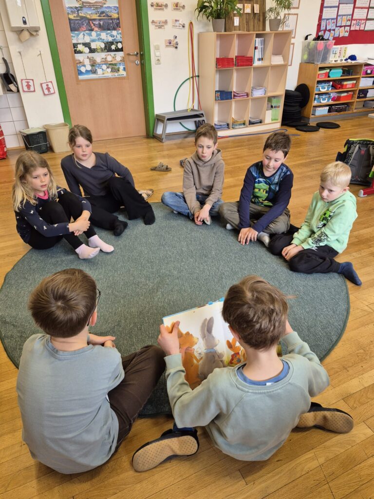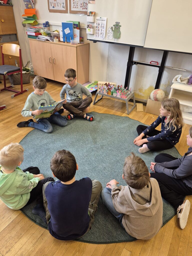 Mit großer Begeisterung wurden Bücher ausgewählt und in kleinen Gruppen vorgelesen. Dabei konnten die Kinder nicht nur ihre Lesefähigkeit trainieren, sondern auch ihre Zuhörkompetenz stärken.