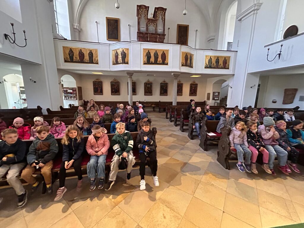 Am Montag, den 23. März 2026, feierten die Schülerinnen und Schüler der Volksschule Aschach gemeinsam den Ostergottesdienst in der Kirche in Aschach.