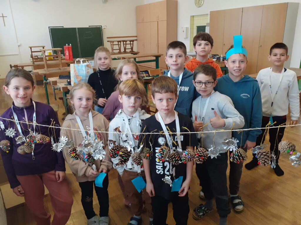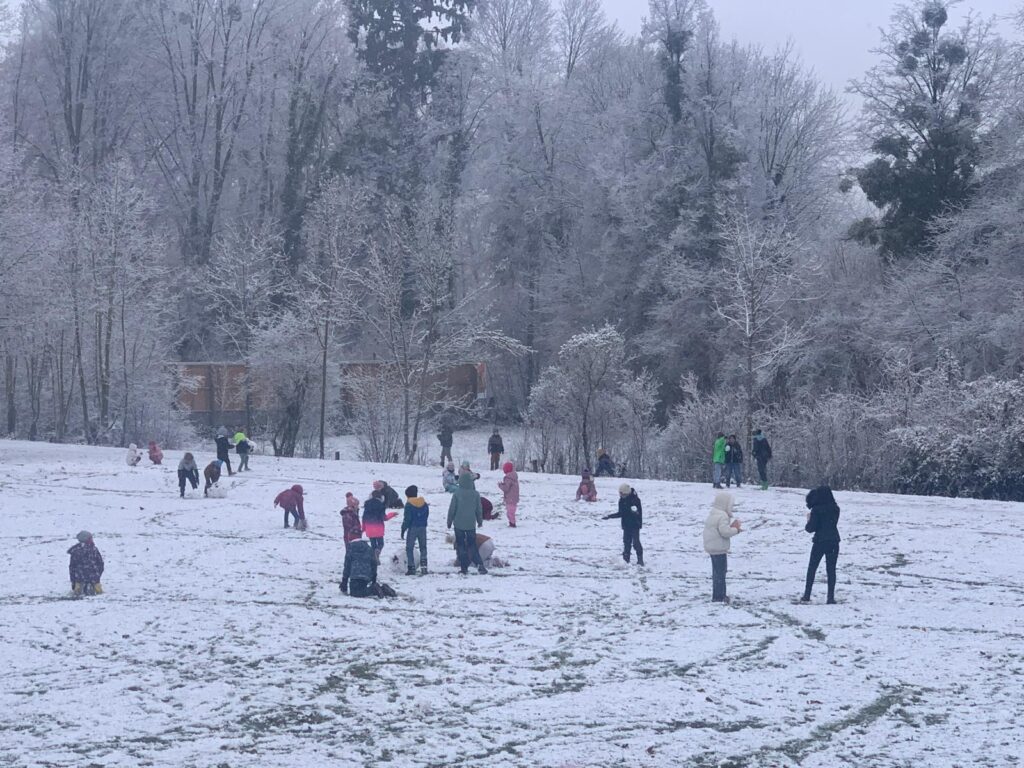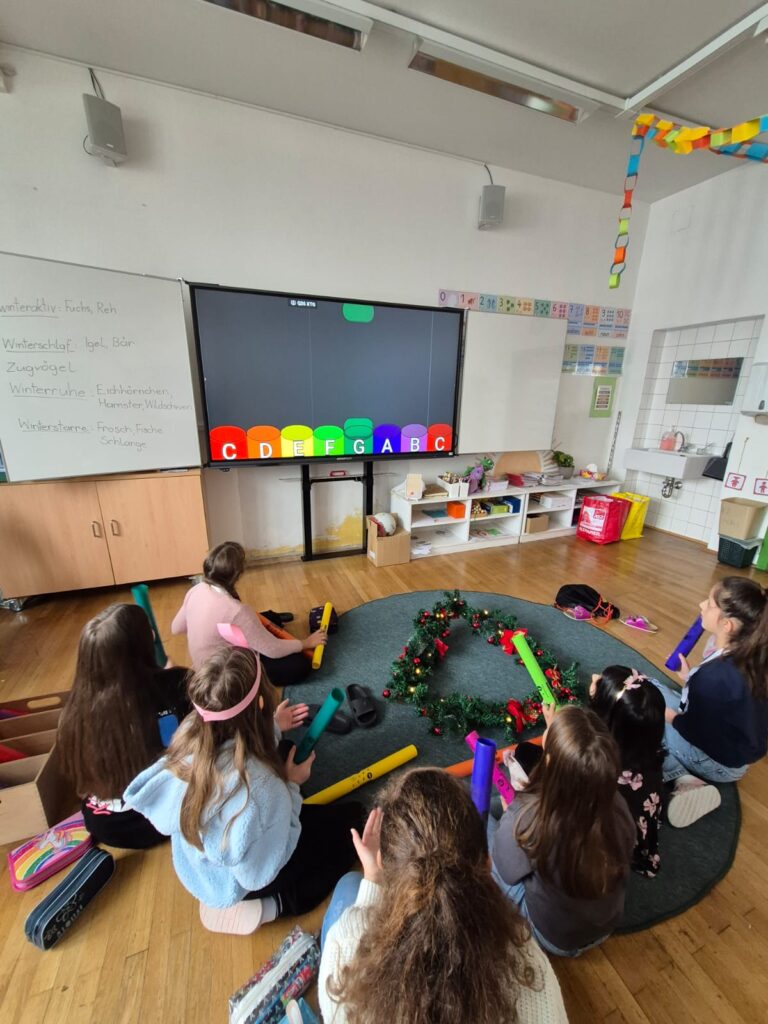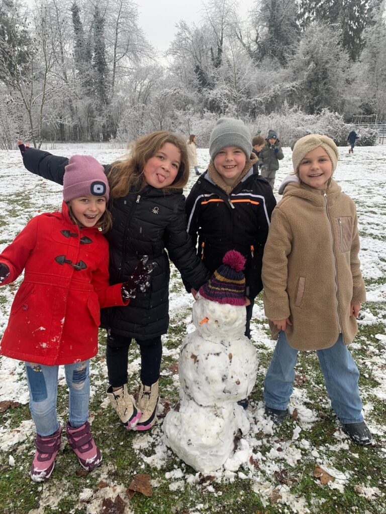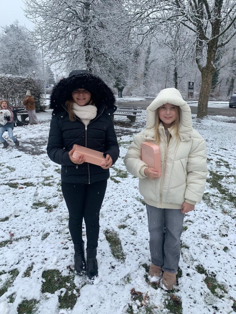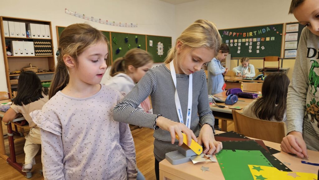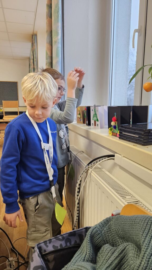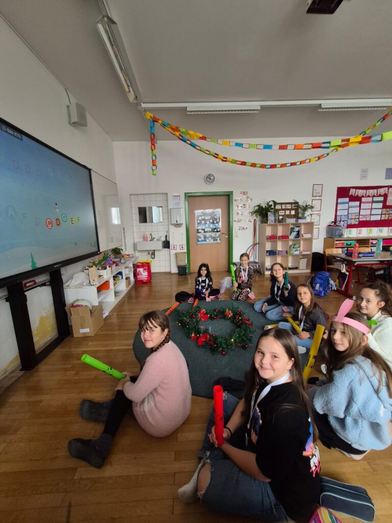 Mit großer Begeisterung wurden Weihnachtskarten gestaltet, Christbaumschmuck gebastelt, fröhliche Lieder gesungen sowie Rhythmusspiele und Volkstänze ausprobiert. Die Vielfalt der Angebote sorgte dafür, dass für jedes Kind etwas Passendes dabei war. Der erste Schnee sorgte für eine ausgelassene und fröhliche Pause!