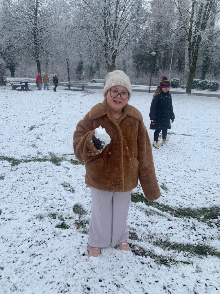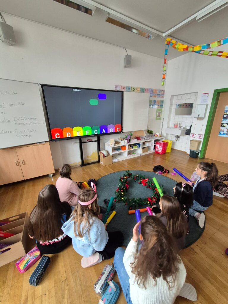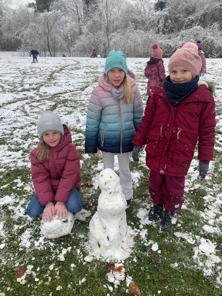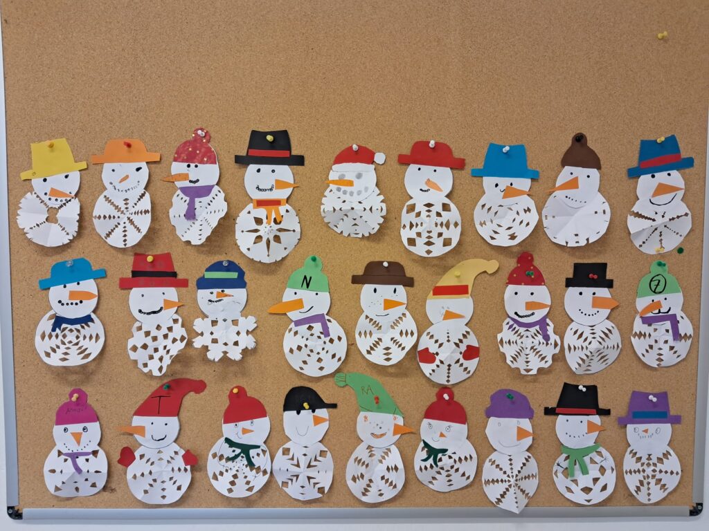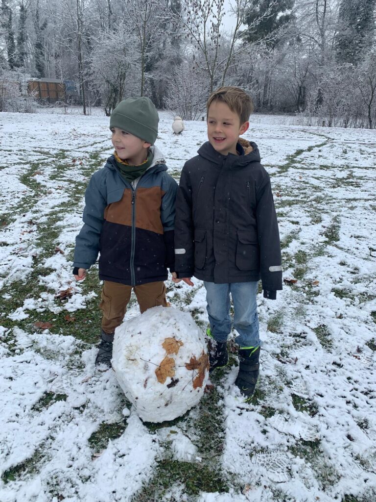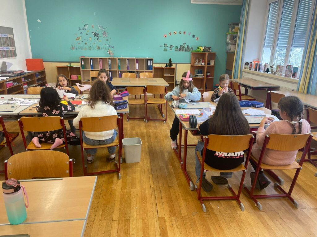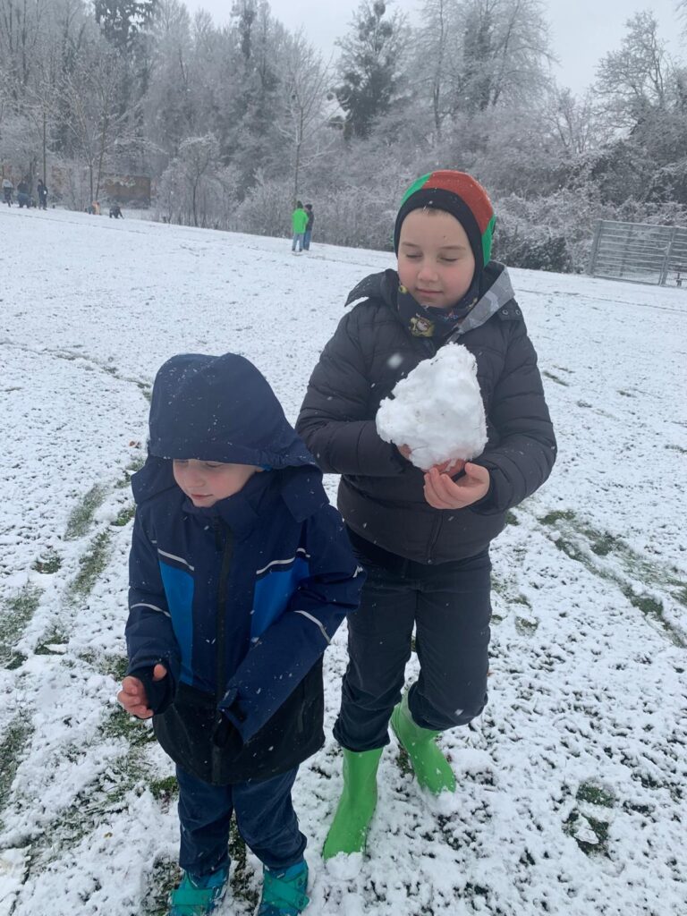 Mit großer Begeisterung wurden Weihnachtskarten gestaltet, Christbaumschmuck gebastelt, fröhliche Lieder gesungen sowie Rhythmusspiele und Volkstänze ausprobiert. Die Vielfalt der Angebote sorgte dafür, dass für jedes Kind etwas Passendes dabei war. Der erste Schnee sorgte für eine ausgelassene und fröhliche Pause!
