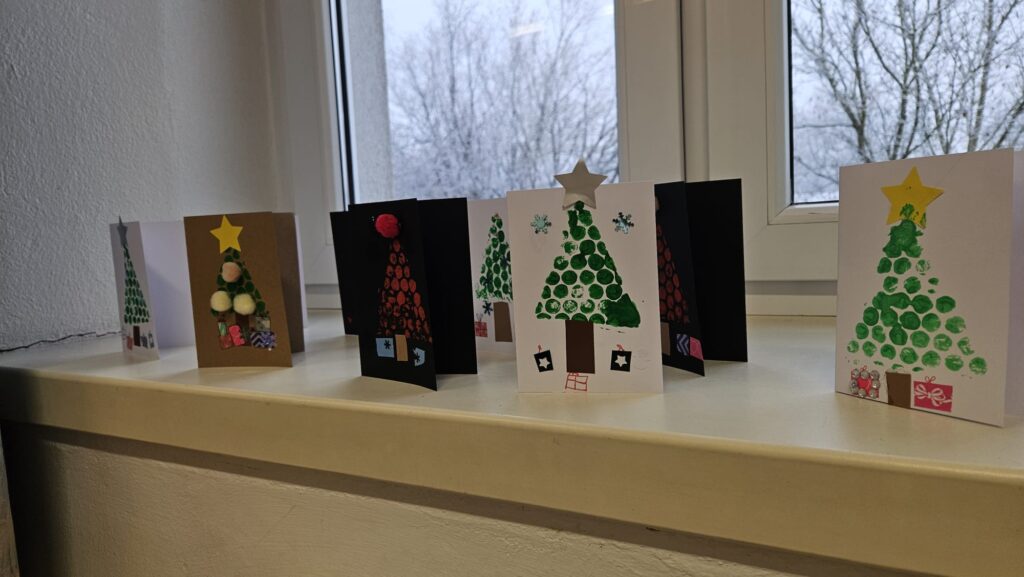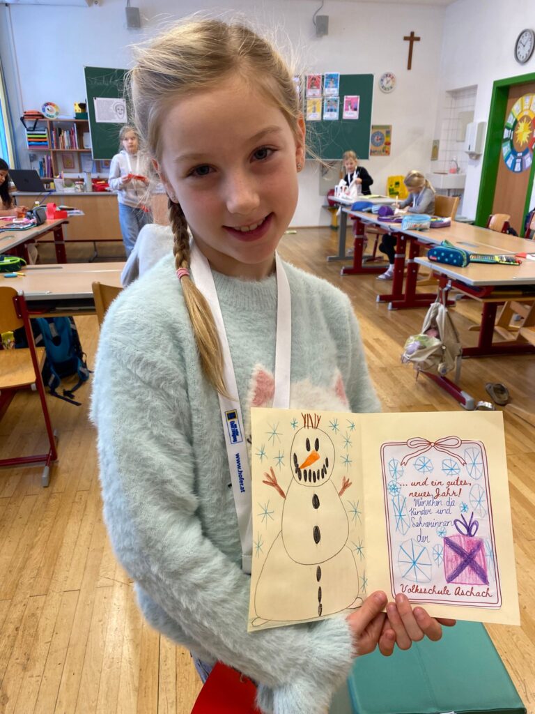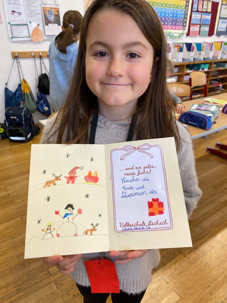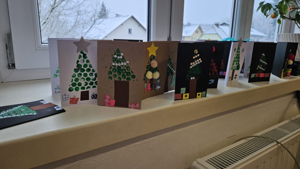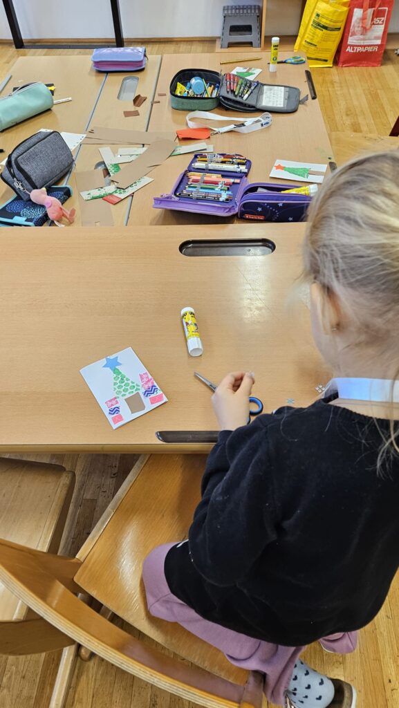 Ein besonderes Highlight war das gemeinsame Gestalten des Christbaumschmucks für die Christbäume im Aschacher Ortszentrum. Außerdem entstanden an diesem Tag unsere alljährlichen Weihnachtskarten, die traditionell von den Kindern in den Postkästen in Aschach verteilt werden – eine schöne Geste, die jedes Jahr viel Freude bringt.