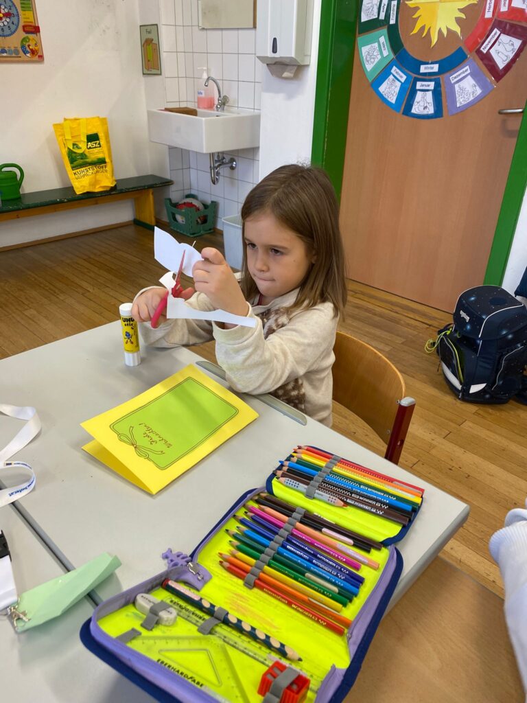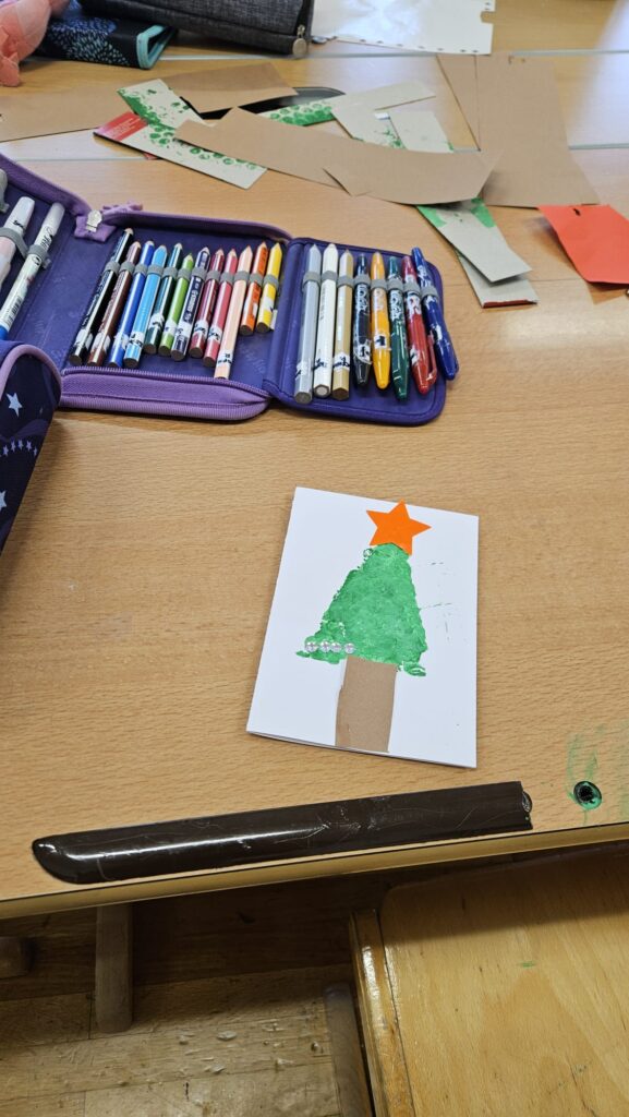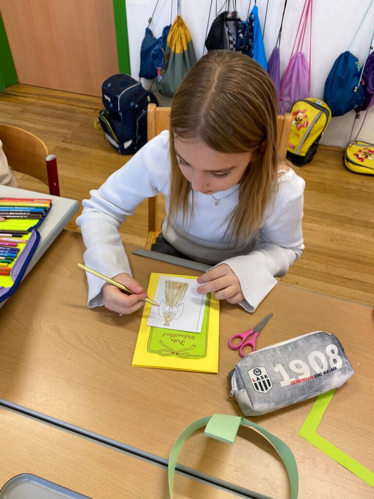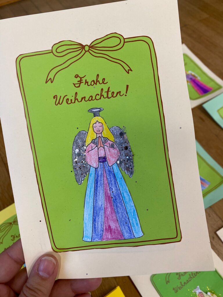 Ein besonderes Highlight war das gemeinsame Gestalten des Christbaumschmucks für die Christbäume im Aschacher Ortszentrum. Außerdem entstanden an diesem Tag unsere alljährlichen Weihnachtskarten, die traditionell von den Kindern in den Postkästen in Aschach verteilt werden – eine schöne Geste, die jedes Jahr viel Freude bringt.