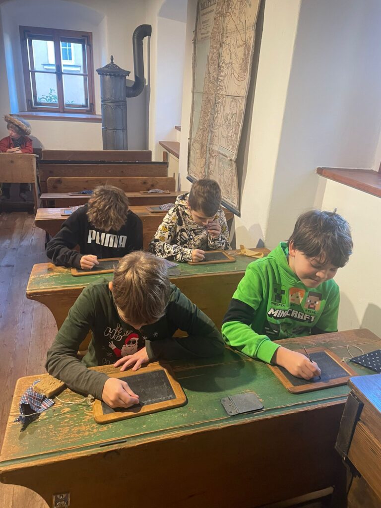 Am 10. Dezember besuchte die 4. Klasse zunächst das Schulmuseum und anschließend die Lebzelterei Kastner in Bad Leonfelden. Im Schulmuseum erhielten die Schülerinnen und Schüler einen anschaulichen Einblick in den Schulalltag früherer Zeiten, der oft sehr streng und beschwerlich war.
