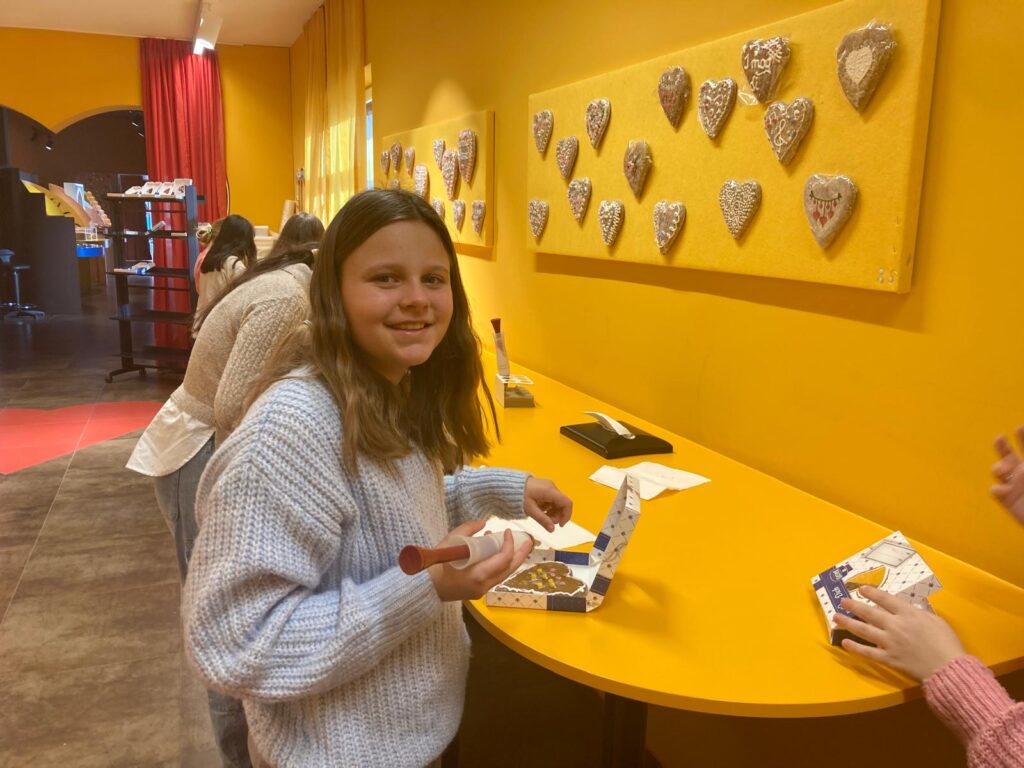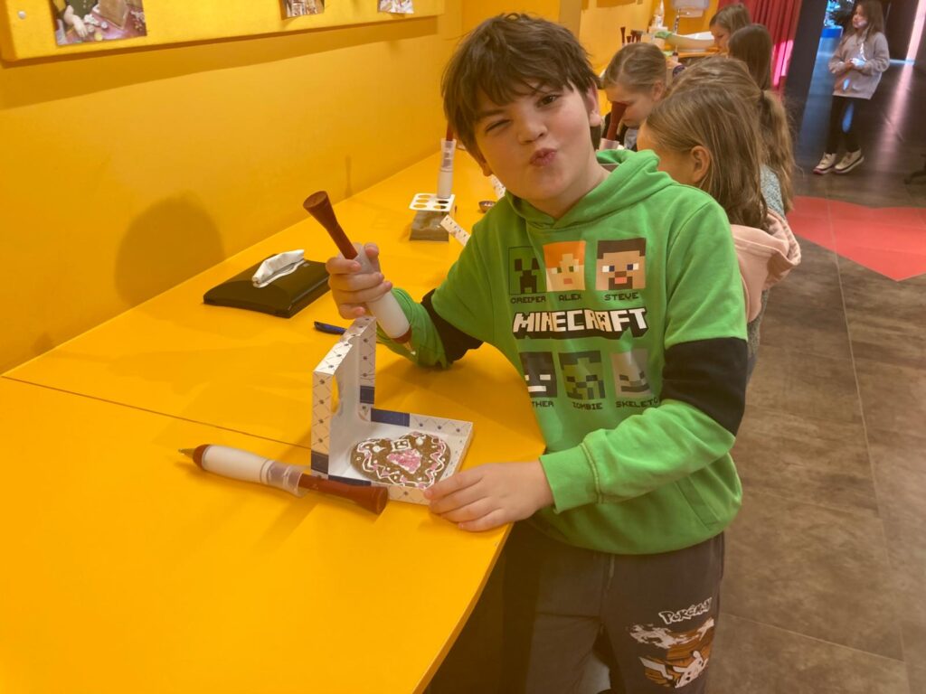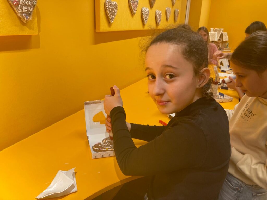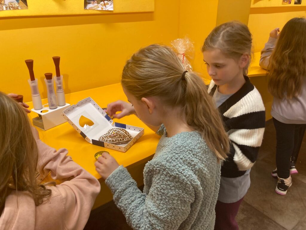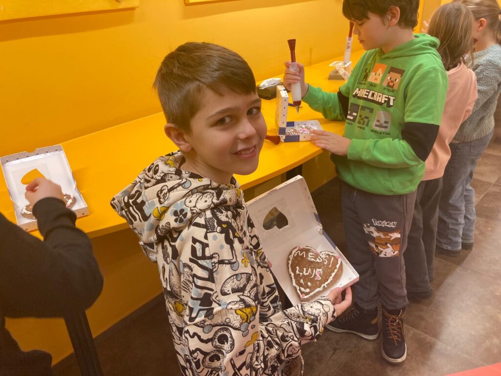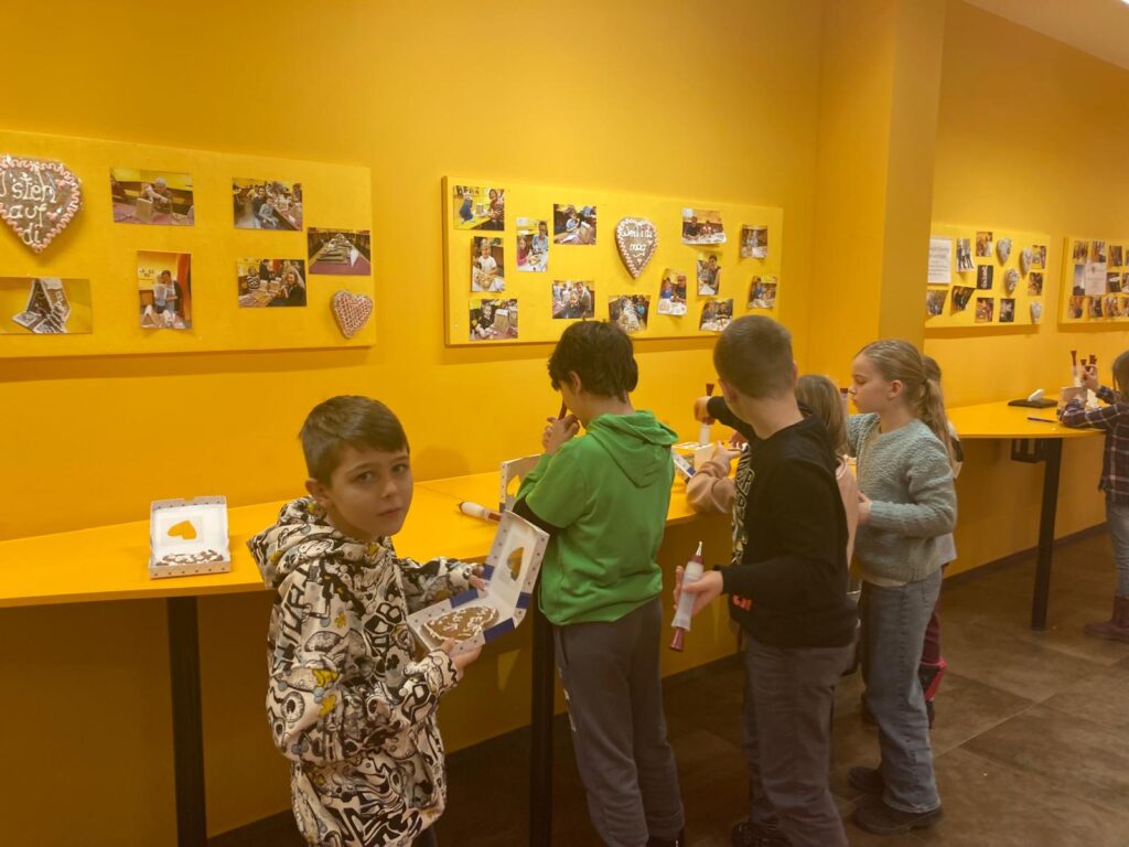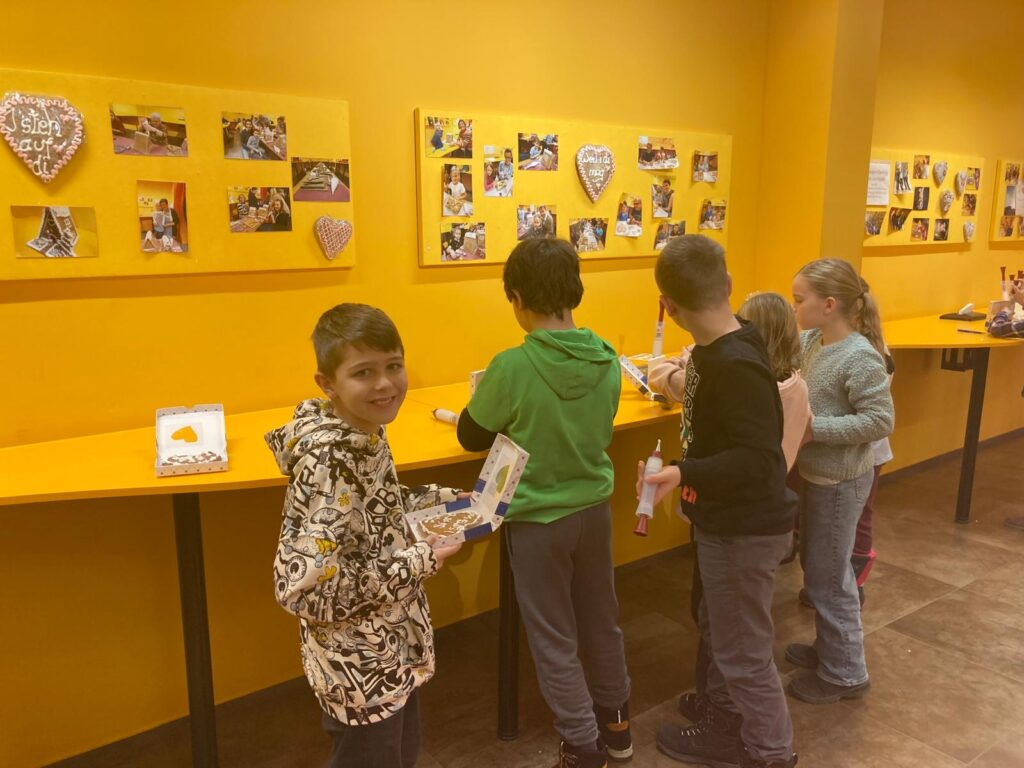 In der Lebzelterei Kastner erfuhren die Kinder, dass Lebkuchen bereits eine lange Tradition haben. Sie lernten die wichtigsten Zutaten kennen und bekamen erklärt, wie Lebkuchen hergestellt wird. Ein besonderes Highlight war das Verzieren eines eigenen Lebkuchenherzens. Nach einer kurzen Verkostung wurde außerdem noch fleißig für die Familie eingekauft.