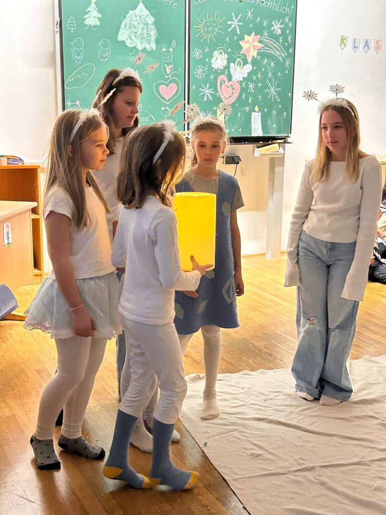 Mit dem gemeinsamen Lied „Lichterkinder“ schlossen die Schülerinnen und Schüler ihre beeindruckende Aufführung ab. Ein herzliches Dankeschön gilt allen Mitwirkenden sowie Frau Ilse Mayr, der Klassenlehrerin der 4a, für ihr großes Engagement und die gelungene Vorbereitung.